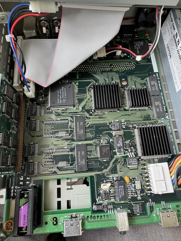 Wie die Unterseite zeigt, handelt es sich um ein System, das an Entwickler gegeben wurde. Dieses hat auch den SCSI-Anschluss per Flachbandkabel nach aussen geführt.